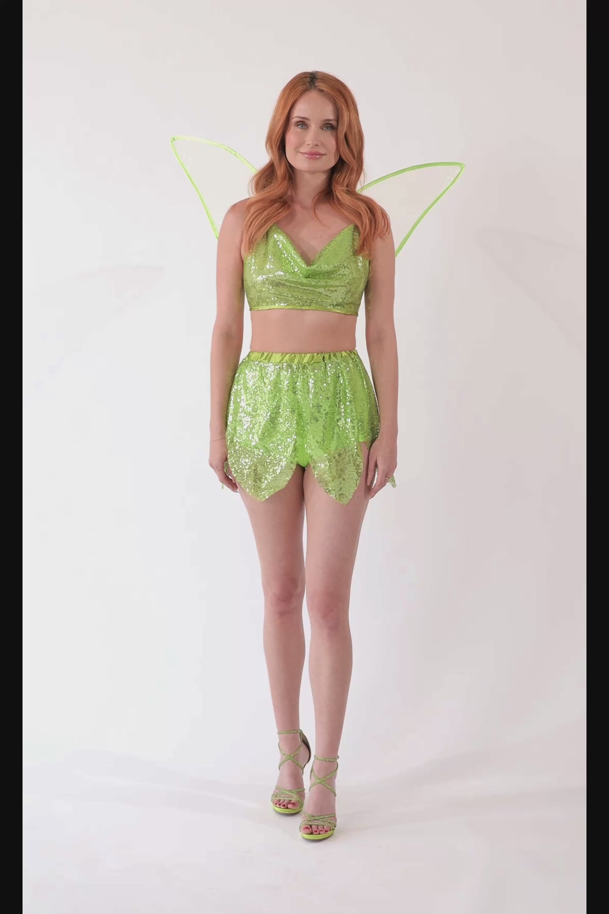 The entire costume is made with eye-catching sequined fabric that shimmers as you move. The crop top has a drawstring, making it easy to adjust for a perfect fit (ideal for women who wear sizes 0 to 4). The skirt features an elastic waistband, which also comfortably fits sizes 0 to 4. The included underpants provide extra coverage and security.